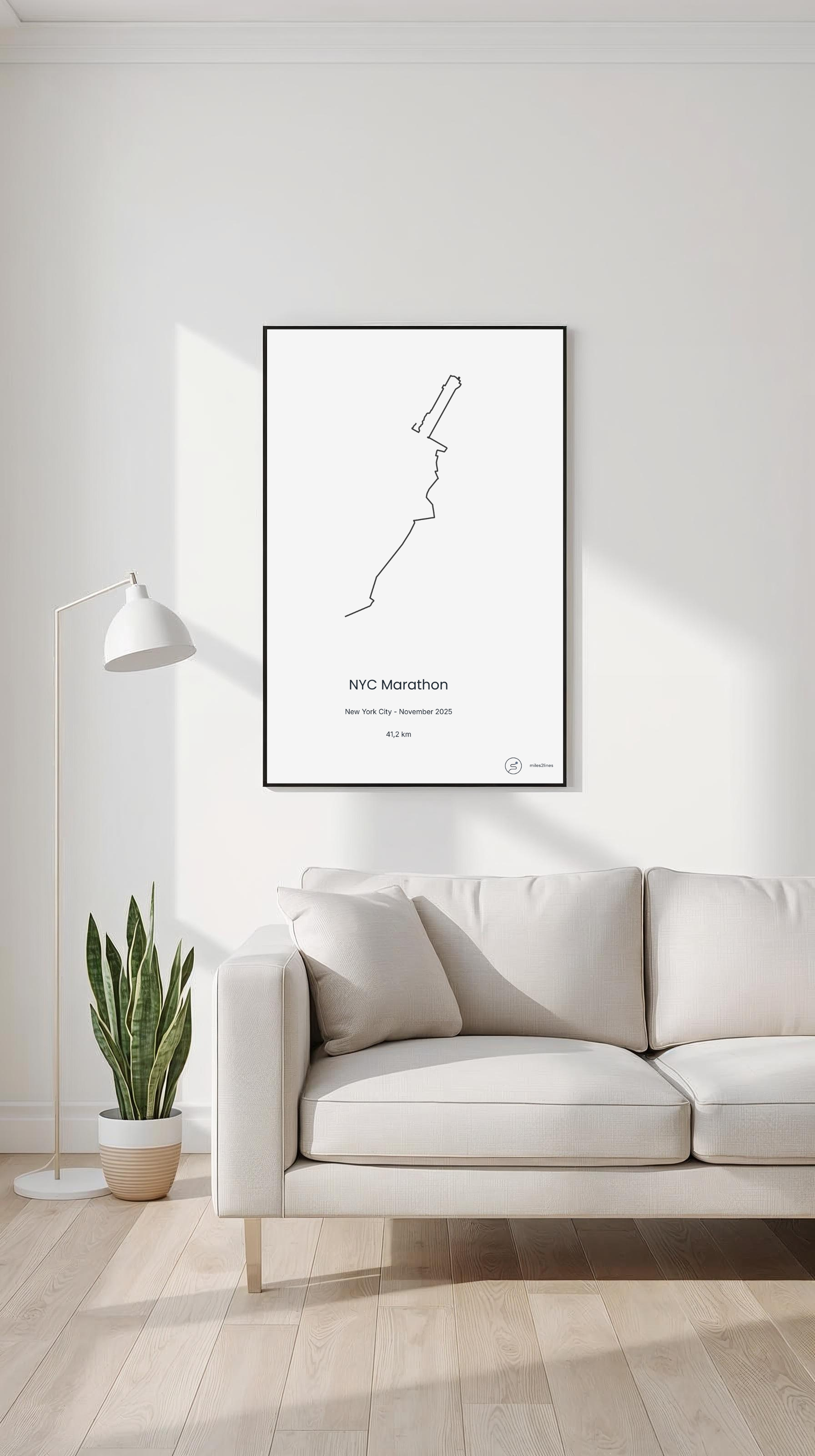 Balance Story ist für Fälle gedacht, in denen die Route allein nicht ausreicht. Ihre Linie wird mit einem übersichtlichen Textlayout kombiniert: Name der Veranstaltung oder Route, Ort, Datum und Entfernung – gerade genug Informationen, um die Geschichte zu erzählen, ohne das Design zu überladen. Es ist die perfekte Balance zwischen minimalistischem Kunstdruck und persönlicher Erinnerung.